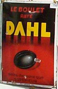 752 . Dahl, le boulet rayé Plaque émaillée bombée,