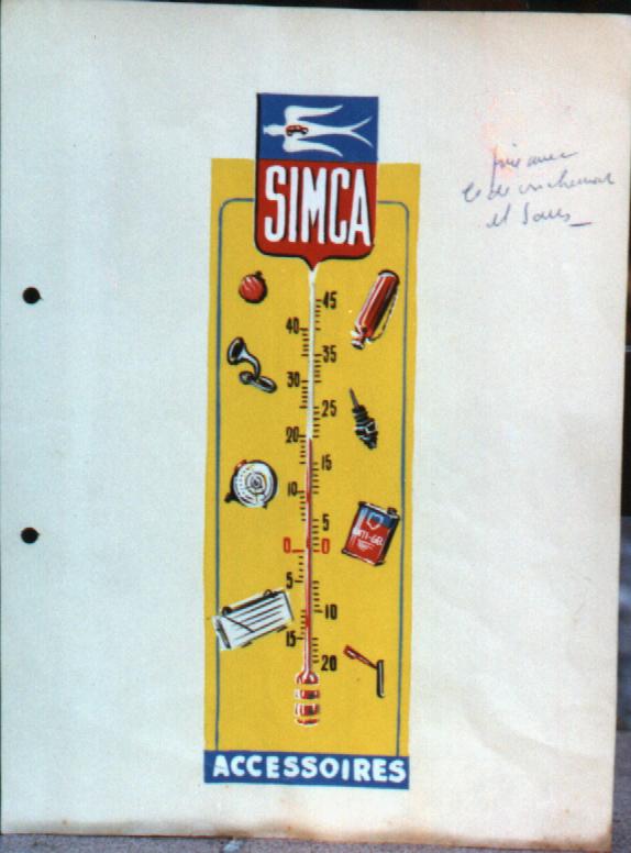 Maquette gouache pour un thermomètre Simca de 1953 jamais réalisé