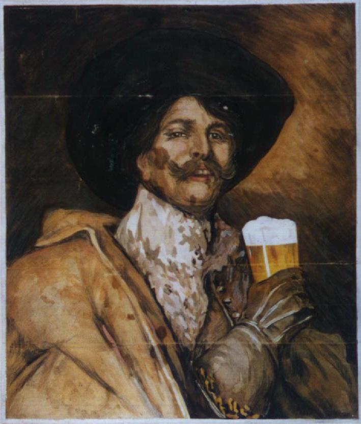 A gauche: Maquette gouache de 37,5 x 32 cm pour la brasserie de Tantonville ayant