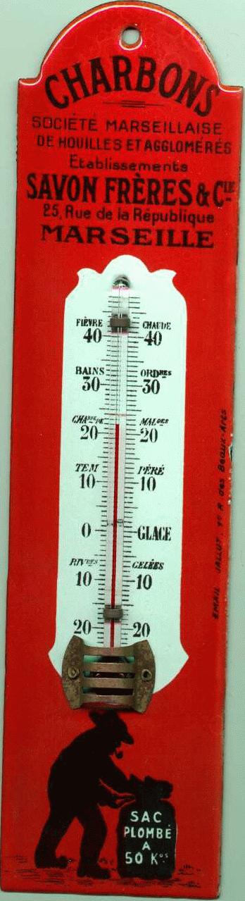 Thermomètre. 21,5 x 5,5 cm. Version existant en 1m de haut et en plaque rectangulaire bombée.